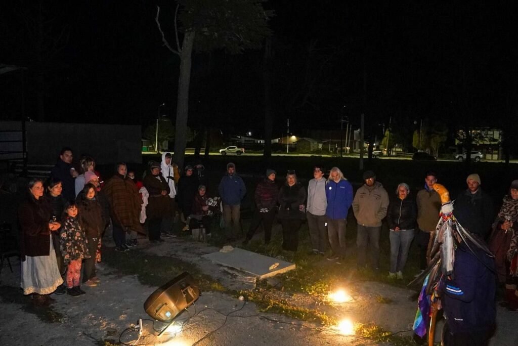 Guiada por integrantes de la Comunidad Selk’nam Rafaela Ishton, la vigilia incluyó palabra, intercambio y fuego ceremonial, configurando un espacio de profundo respeto y transmisión cultural. Desde el Municipio estuvo presente el Director de Cultura, Alejandro Machuca, quien destacó y agradeció la apertura de la comunidad anfitriona y su permanente labor por la recuperación de la memoria ancestral.