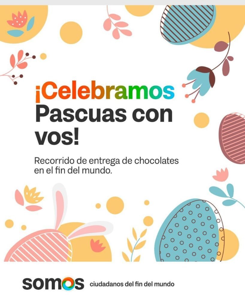En Ushuaia, se estará compartiendo huevos de chocolate en los Centros Infantiles Integrados; CAAD; Fundación Kau-Yak; centros de jubilados, entre otros espacios de la comunidad.